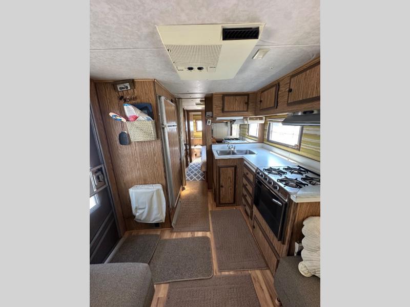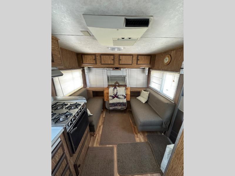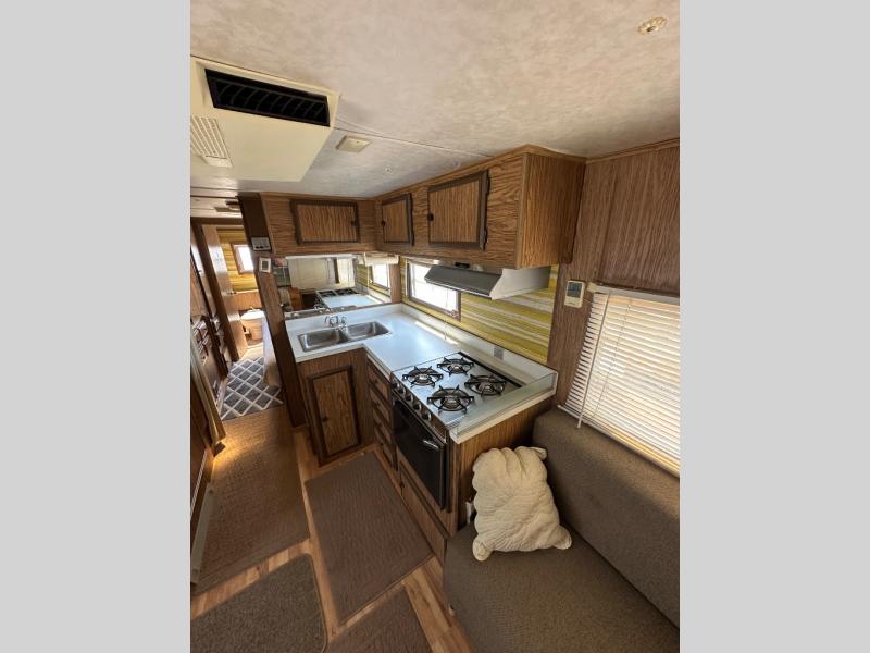 Step into a classic with this 24-foot 1975 Kit Companion 2400 SC travel trailer. Built with the quality craftsmanship Kit was known for, this unit offers a nostalgic camping experience paired with practical features. The layout includes a spacious front dinette that converts into a bed, a mid-kitchen with a 3-burner stove and oven, dual sink, and a refrigerator, plus a rear bedroom with a full-size bed and generous storage. The bathroom includes a toilet and shower. Weighing approximately 3,500–4,000 lbs dry, it can be towed by many half-ton trucks. This trailer is perfect for vintage enthusiasts or someone looking for a solid, budget-friendly camper.
