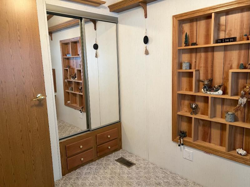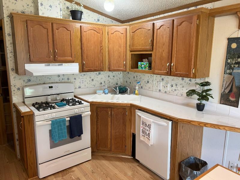PRICE REDUCED AGAIN! ON SEASONAL SITE! WOODED SITE! GREAT WEEKENDER!Let this Lee Baycrest park model be your second home! This park model/house features three additions, three bedrooms, a dishwasher and a washer & dryer! A covered porch welcomes you as you arrive to your new camping adventure. When you walk inside you will find a spacious entryway/living room with a closet and counter with cabinets and drawers. Go up a few steps and you will find the first bedroom with a closet, end tables and built in shelves. The bathroom with a corner shower, toilet and vanity is nestled between the bedroom and kitchen. In the kitchen you will find a large double door refrigerator with a bottom drawer freezer, a microwave, range and dishwasher. No more having to hand wash those pesky dishes which will allow more time to have fun! There is also a large center island with storage. The dining room area has some built in shelving and cabinets. Next you will find the utility room. There is a water softener, water heater, washer, dryer and a deep sink. Just off of the utility room is a pantry/closet. The second bedroom is located next to the utility room and has a closet. As you head to the back of the park model there is an added on living room and third bedroom with a walk in closet. The shingles were just replaced June 2025 and has freshly painted interior walls. This park model has a total of three built on additions. It also has a car port over a concrete slab and a large shed. This is a seasonal residence only.