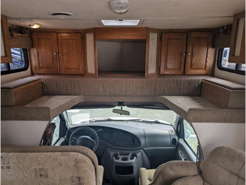 Bigfoot Series Class C Motorhome by Bigfoot Industries w/Rear Corner Bath Including Tub/Shower, Toilet, Vanity, Rear Corner Double Bed w/Overhead Cabinets, Shirt Closet, Refrigerator, Wardrobe, 3 Burner Range, Double Kitchen Sink, Drop Leaf, Booth Dinette w/Overhead Storage, Cocktail Chair, Above Cab Area w/Storage,