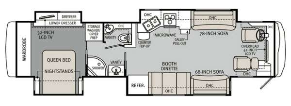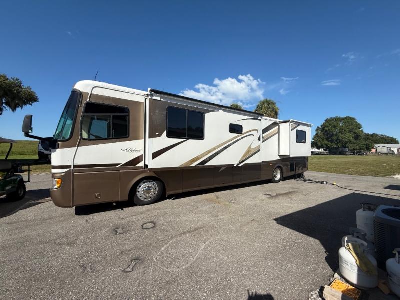 ONLY 97,000 miles!! Quad Slide Diplomat Motor Home, Rear Wardrobe, 32" LCD TV/Dresser Slide, Storage, Washer/Dryer Prep, Private Toilet Area w/Lav., Vanity, Counter Flip-Up, Dbl. Kitchen Sink/3-Burner Range/Microwave/Sofa Slide, 42" LCD TV Mid-Ship, Sofa/Booth Dinette/Refrigerator Slide, Lav., Vanity, Shower, Overhead Cabinets Throughout & Much More. Available Options May Include: Hide-a-Bed Sofa, Workstation Dinette, Extendable Sofa, Booth Dinette Ensemble, King Bed.