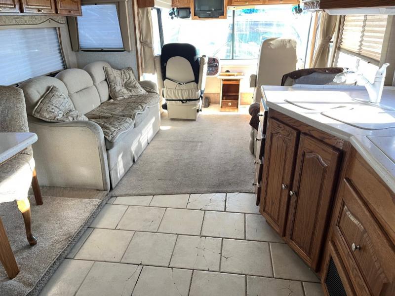 We encourage an in person inspection of the RV to verify what you are buying. Due to the age and condition of the RV, it is being sold AS IS - AS SHOWN. The slide out functions. The tires are sidewall checked, kitchen tiles are cracked, and the refrigerator has been changed to a 110V model.