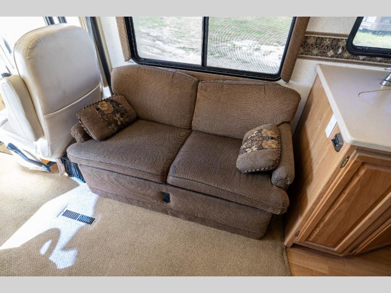 Floorplan: Spacious 36-foot layout with a large slide-out that expands the living area for maximum comfort.
