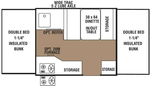 Epic Folding Camper w/Front & Rear Double Tent End Beds, Opt. Refrigerator, Opt. 20 M Furnace, 2 Burner Range, Storage Cabinets, Booth Dinette, In/Out Table, Storage Below Dinette Seats and Much More.
