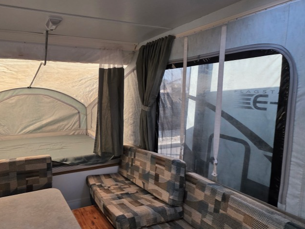 Front Queen Bunk & Rear Full Bunk, Storage/Lounge Area, 3 Burner Stovetop, Galley Sink, Opt. Refrig., Opt. 20M Furnace, Storage Cabinet, Opt. Cassette Toilet, Booth Dinette, Under Seat Storage, In/Out Table, Storage Areas Throughout and More!