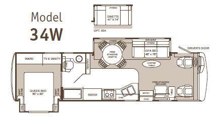 Pace Arrow Class A Motor Home w/Double Slideouts, Rear Queen Bed w/Nightstands, Wardrobe/TV/Vanity, Tub, Vanity w/Sink, Private Toilet Area, Linen Cabinet, Refrigerator, Range, Double Kitchen Sink, Free Standing Recliner, Sofa Sleeper/Table & Free Standing Round Dinette Slide or Booth Dinette, Engine & Chassis Choice and More! Shown w/Ford Specifications, Workhorse Available.