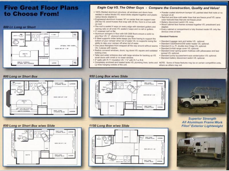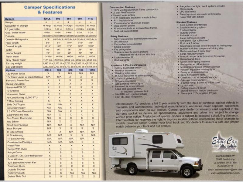 2003 Eagle Cap 950 Truck Camper, Northwest Edition. Fully equipped with dinette slideout, A/C, 2500watt genset w/100 hrs, propane heater, 3 burner stove, Dometic fridge and wet bath w/ shower.
