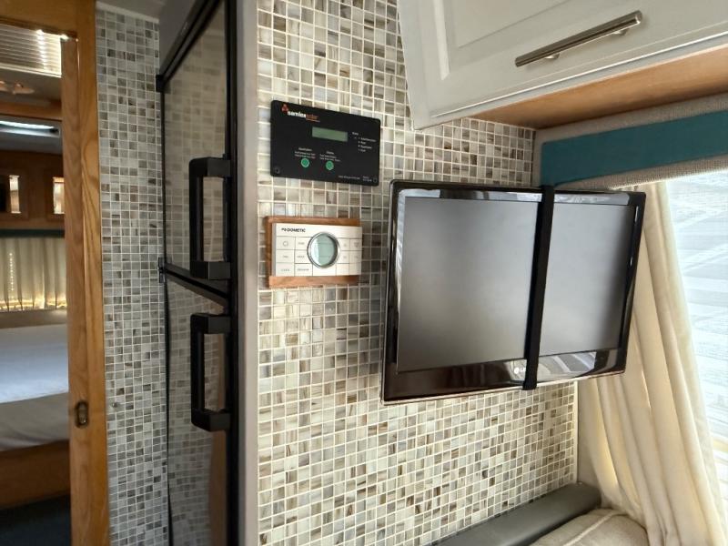 Interior Design: Modern aluminum interior with laminated cabinetry, panoramic front windows, and polished aluminum walls