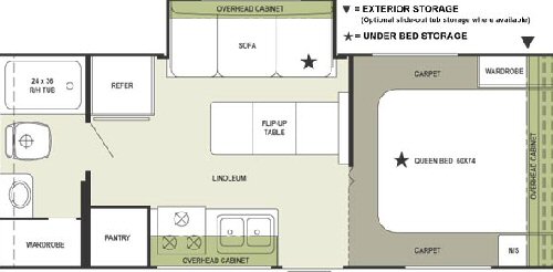 Single Slide, Sleeps 4, Queen Bed, Sofa, Flip up Dinette, Refer, Range, Tub and much more!