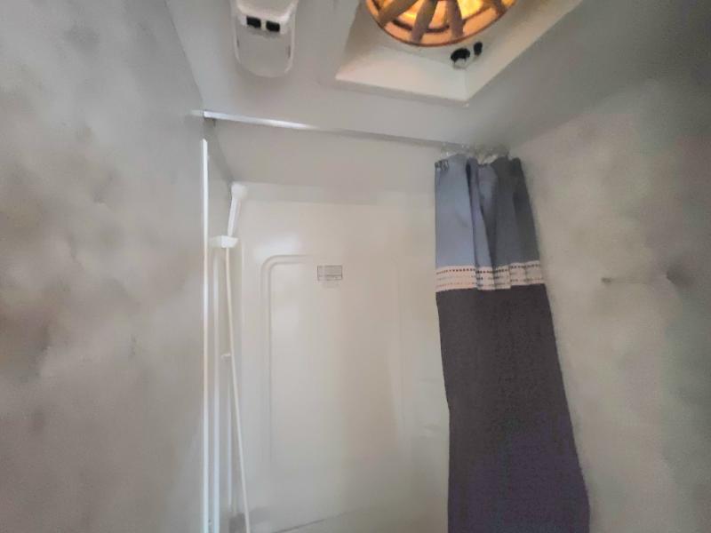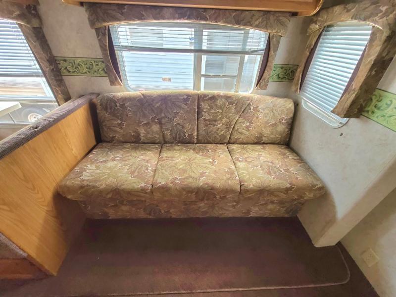 The kitchen comes with all the essentials: a refrigerator, stove, and microwave. The tub/shower lets you clean up after a long day in the woods. And that’s not all—this trailer has much more to offer!