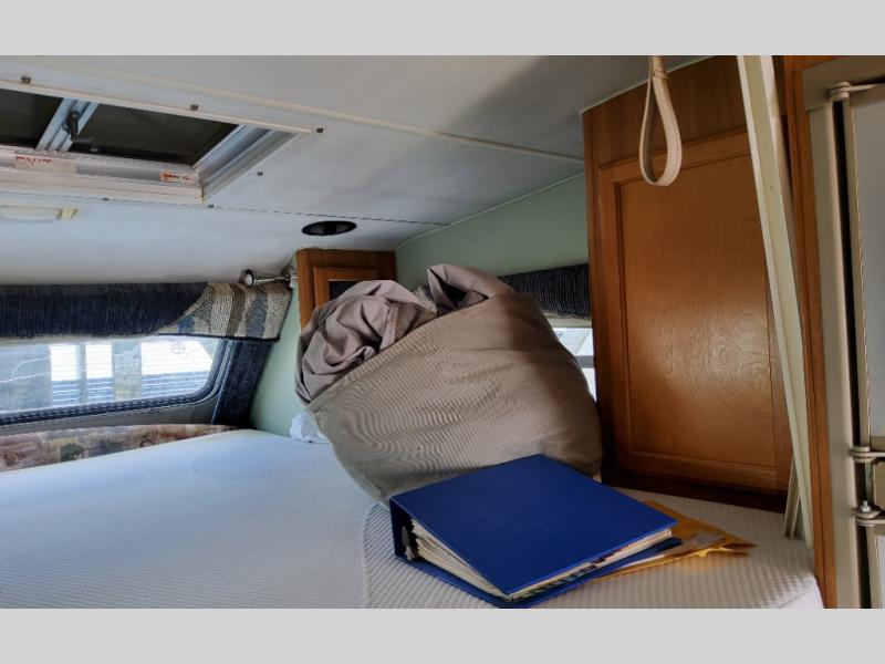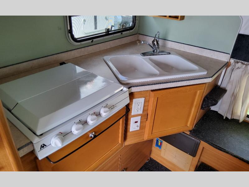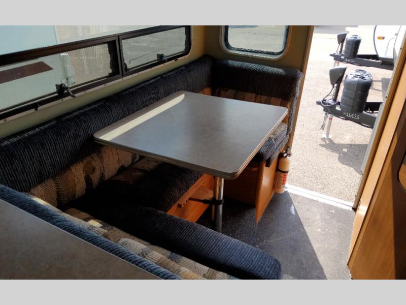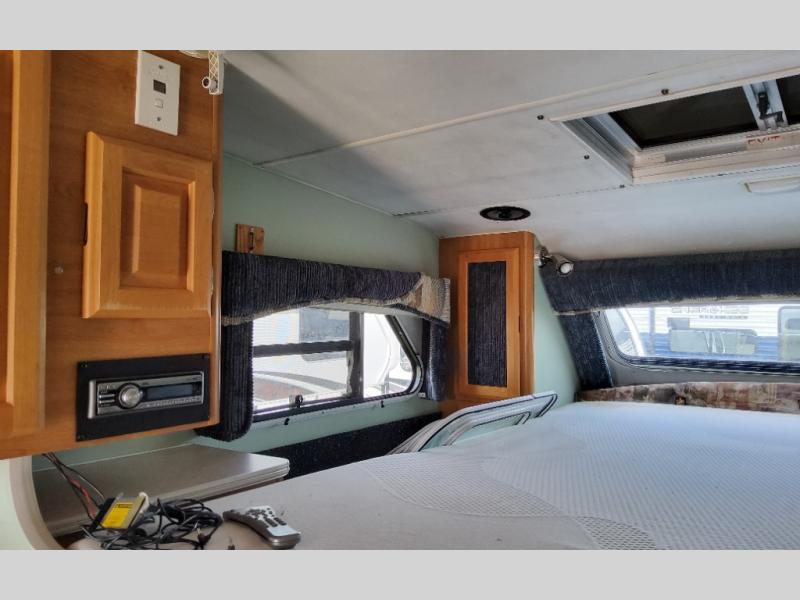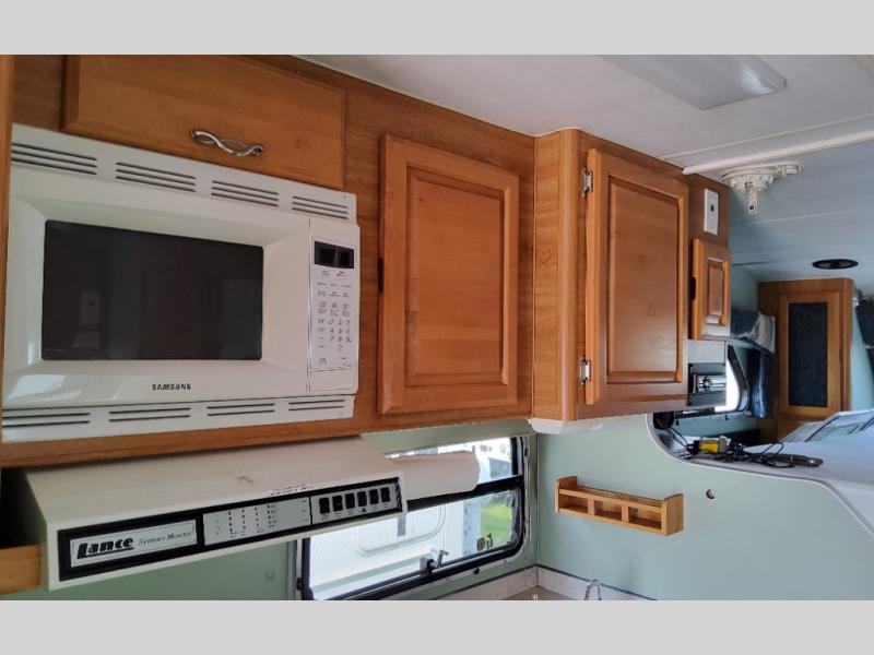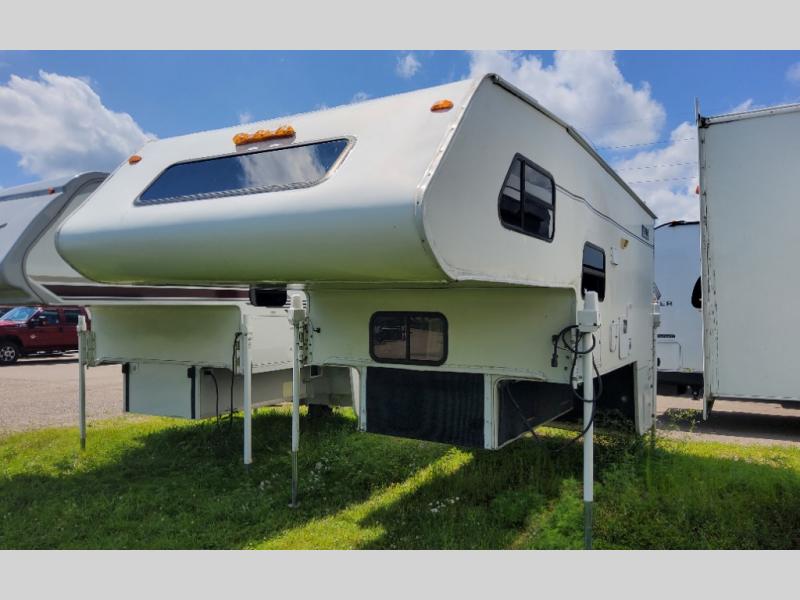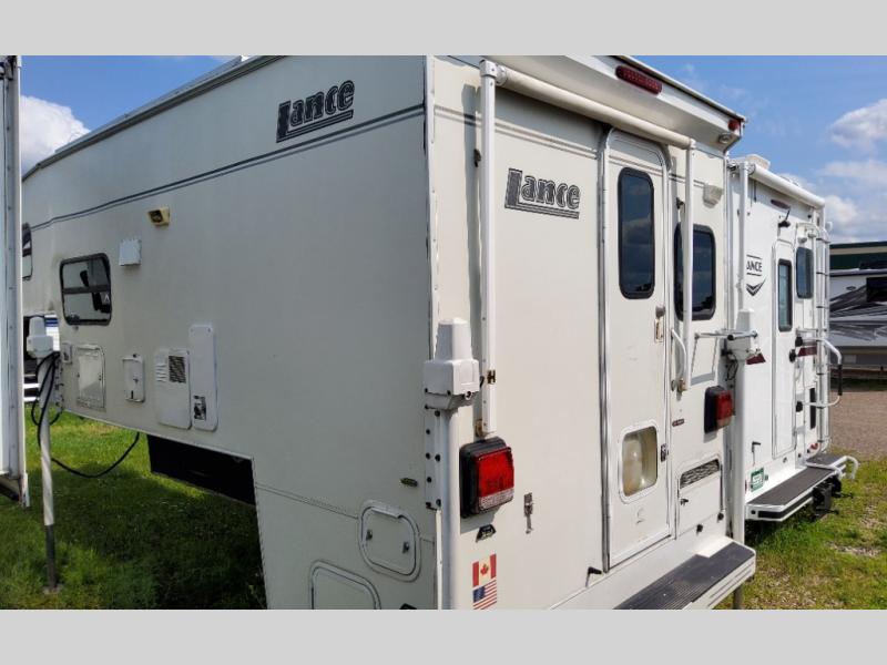 The 2004 Lance 1130 is an 11-foot, 6-inch long, cab-over truck camper that is self-contained and features a dry bath, U-shaped dinette, and a large cabover queen bed. Known for its open feel, ample counter space, and generous storage, this model was a popular long-bed, non-slide truck camper for its time.