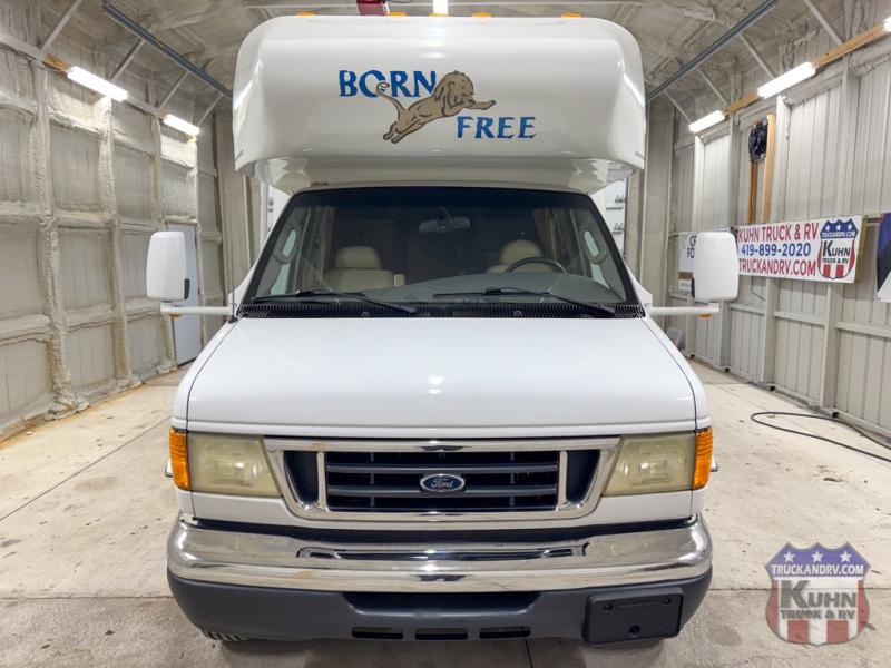 2005 Born Free 26RB - 26.5' bumper to bumper - 6.8L Triton V10 engine - Ford E450 chassis - 15' manual awning - Tow package - 3 burner LP cooktop - Microwave oven - The tires have date codes of 4122 - 2 seat belts - Generac 4k gas generator with 190 hours - Rooftop A/C - Ducted LP furnace - Flat screen TV w/ built in DVD player - Holding tanks - Fully self contained - In the cabin area there are power windows, locks, mirrors, tilt, and cruise - This Born Free is ready to be set free on your next adventure!
