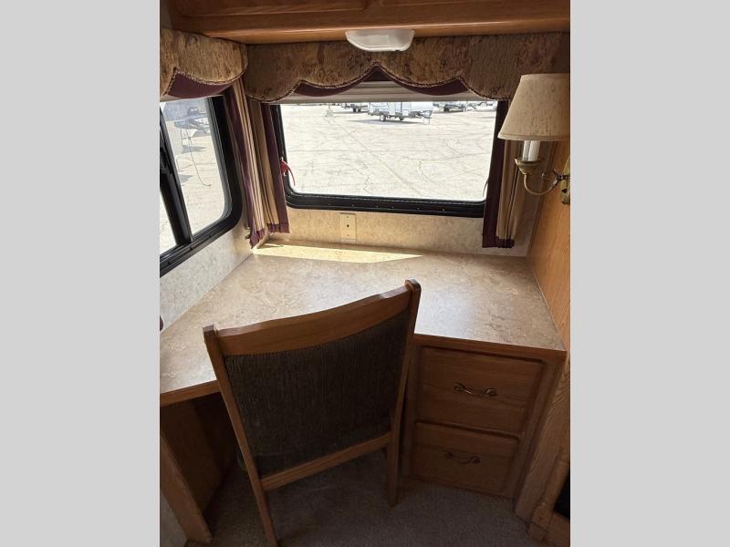 Quad Slide, Rear Living Area, Sleeps 6, Queen Bed, Dresser, Wardrobe, Shower, Sofa Bed, Ent. Center, Chair, Computer Desk, Jumbo Dinette, Stove, Microwave, Refer, and More.