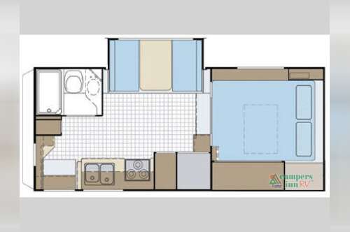• Cab-over queen bed provides a comfortable sleeping area