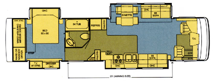 Quad Slide, Rear Ward. w/Sliding Mirrored Doors, Ward. or Wash/Dryer Opt., TV/Storage, Dresser, Side Isle Bath w/Tub, Vanity, Refrigerator, 2 Pantrys, Curio/Hutch, 3 Burner Range, Double Kitchen Sink, 2 Sofas, Dinette w/Chairs, Overhead Cabinet Storage, TV Above Cab Area & More.