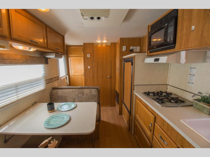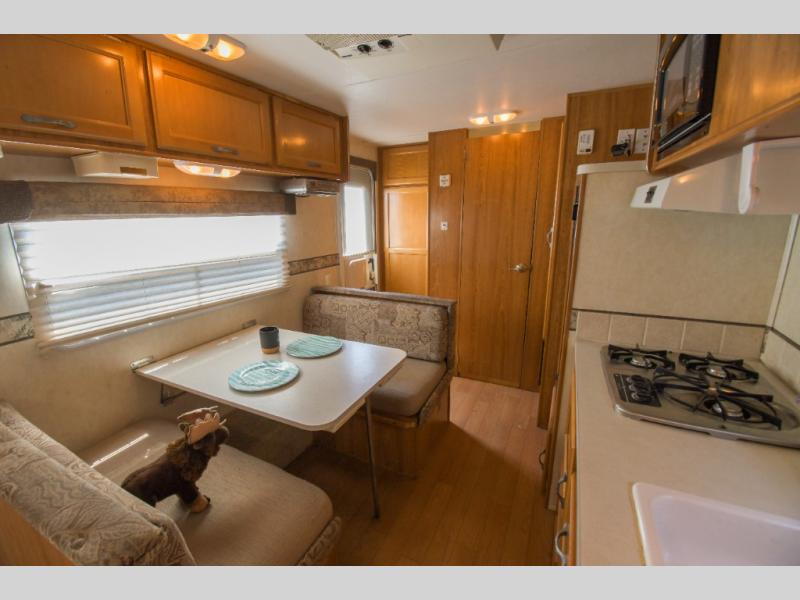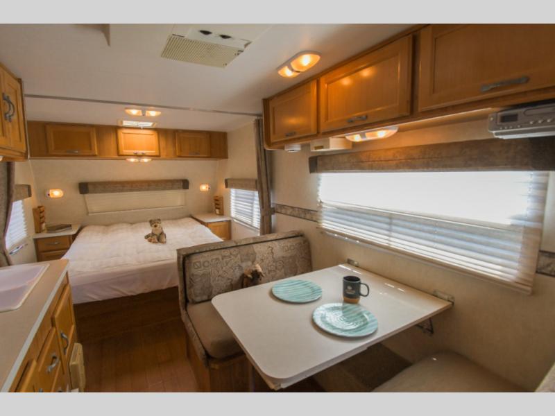 Rear Bathroom, Wardrobe, Kitchen, Refrigerator, 3 Burner Range, Double Kitchen Sink, Booth Dinette, Front Bedroom, Lift Up Queen Bed, Nightstands, and More.