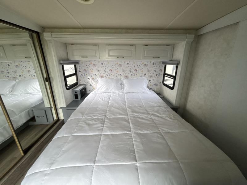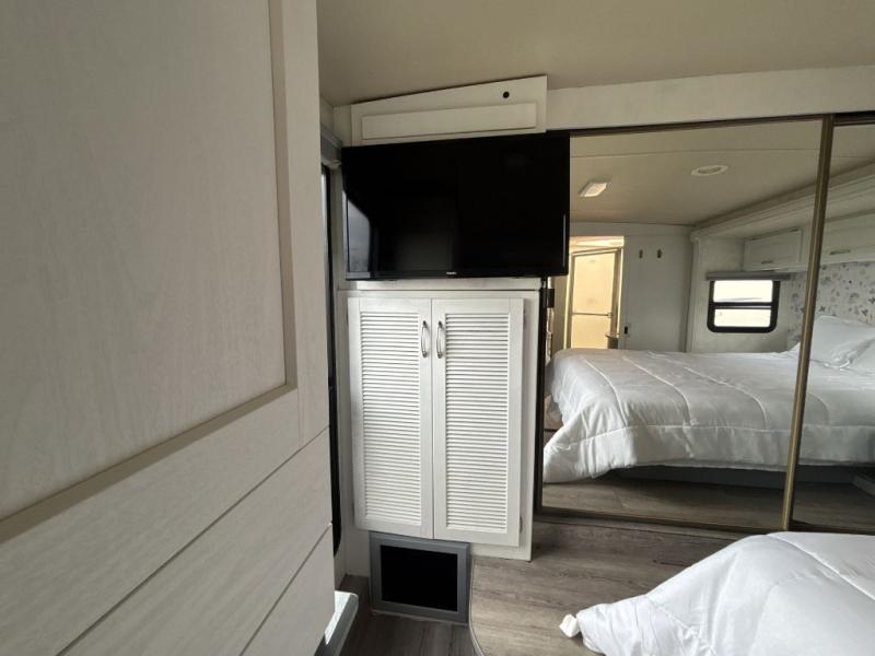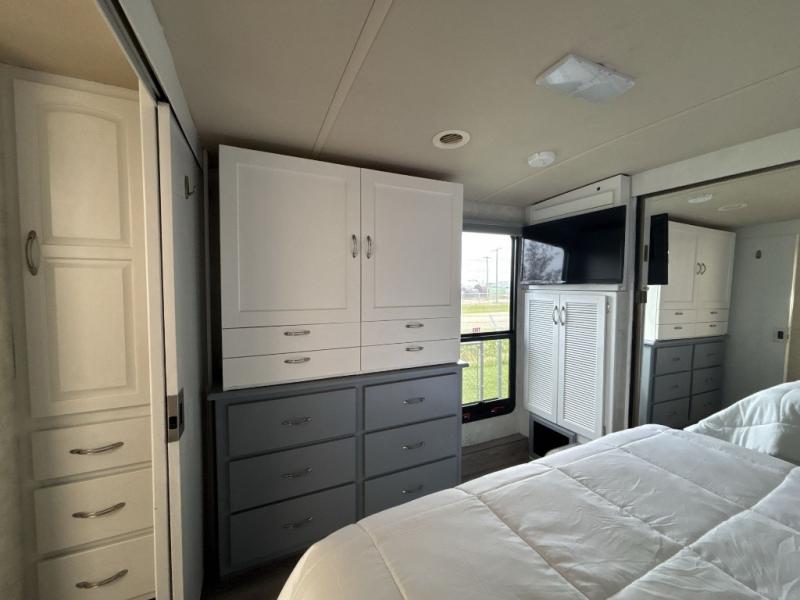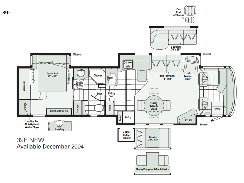 Triple Slide, Queen Bed Slideout, Chest of Drawers, Wardrobe, Storage Area/Opt. Washer/Dryer, Angle Shower, Pantry, Refrigerator, 3 Burner Range, Double Kitchen Sink, 2 Sofa Beds or Opt. J-Lounge &/or Rest Easy Sofa, Booth Dinette w/Opt. Table & Chairs, and More.
