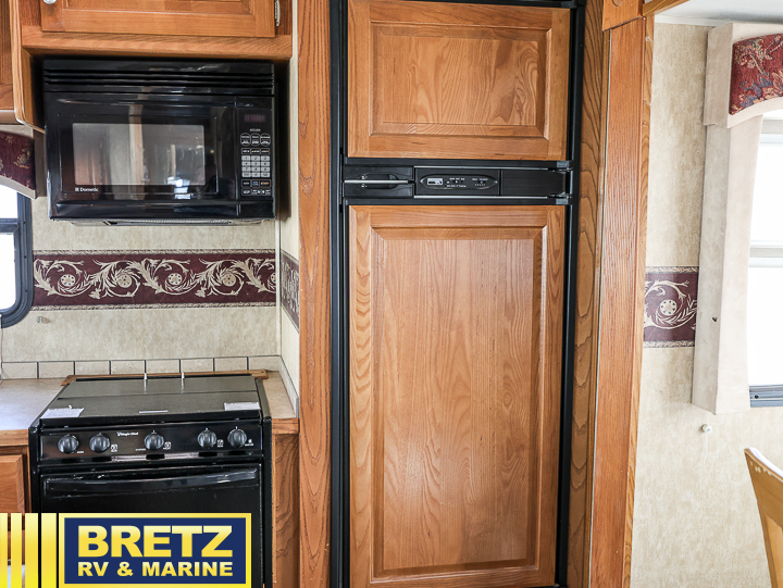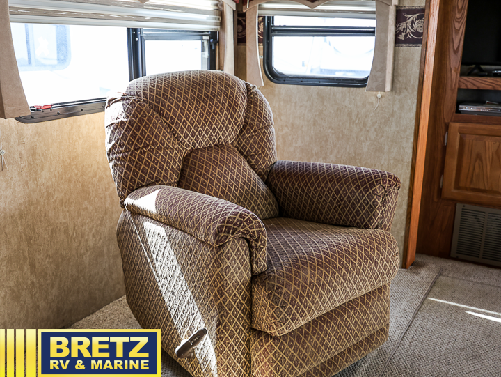 Rear Kitchen, Double Kitchen Sink, 3 Burner Range, Pantry, Refrigerator, Dinette Plus or Free-Standing Dinette/Chairs, Sofa Sleeper or Hide-A-Bed, Ent. Center, High-Boy Chest, Queen Bed, Shirt Closets, Neo-Angle Shower, and More.