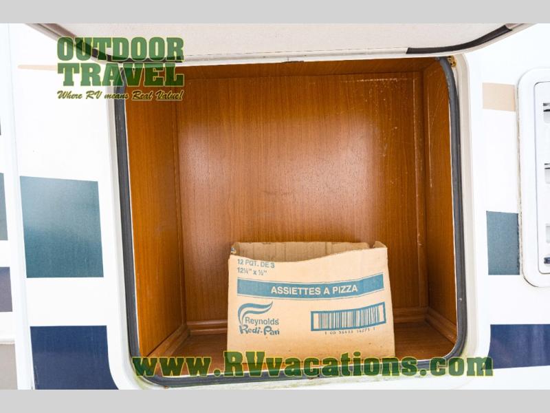 It includes a 13,500 BTU air conditioner, a 34,000 BTU ducted furnace, and a 3-burner range with a piezo ignitor.
