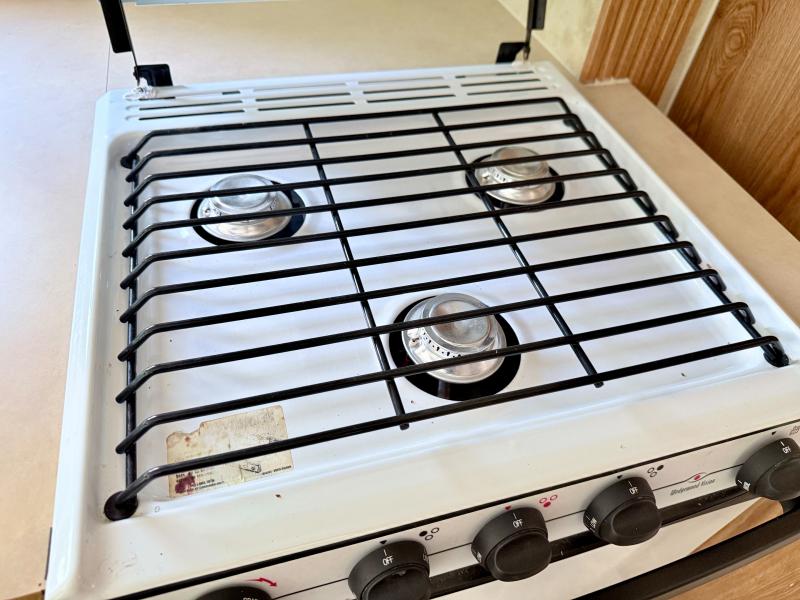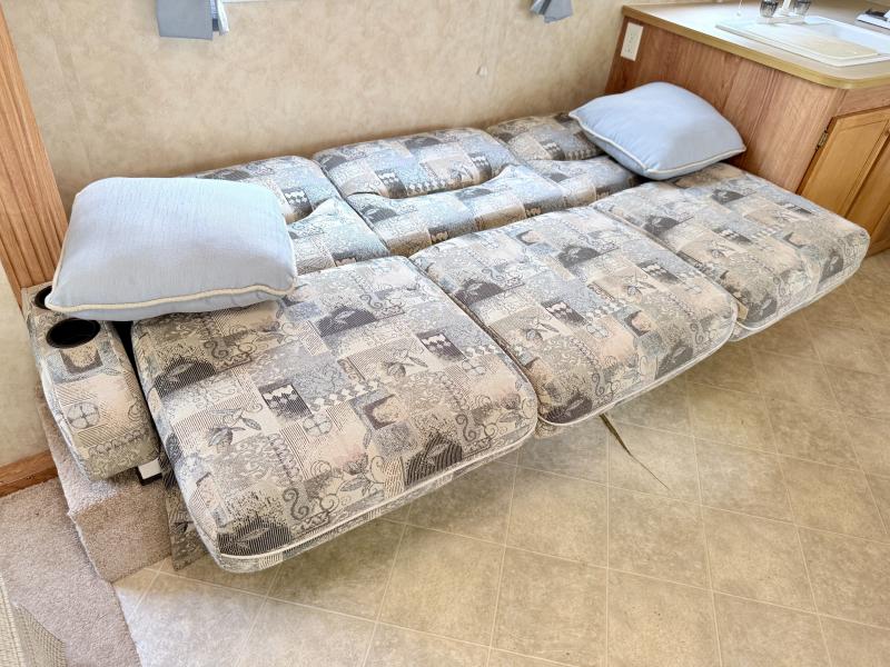 Rear Living Space w/2 Chairs, TV Cabinet, J-Steel Sofa, Dinette, Double Kitchen Sink, Refrigerator, Wardrobe, TV Shelf, Tub/Shower, Queen Bed, Outside Bedroom Entrance and More.