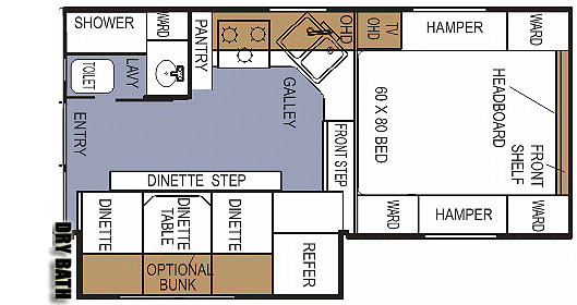 Single Slide Out, Rear Bathroom, Rear Dinette, Full Kitchen, 3 Burner Range, Double Kitchen Sink, Refrigerator, Overcab Queen Bed, Wardrobes, Hampers, TV Shelf, and Much More.