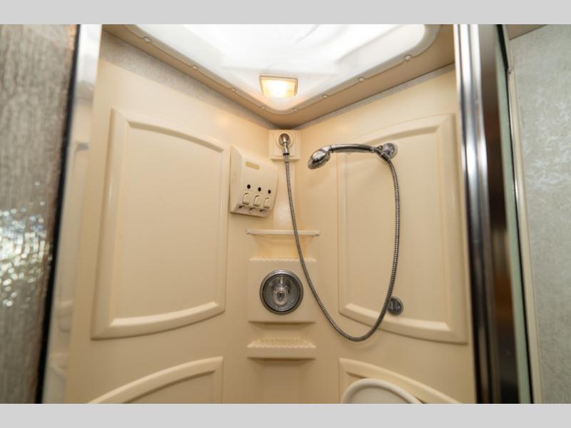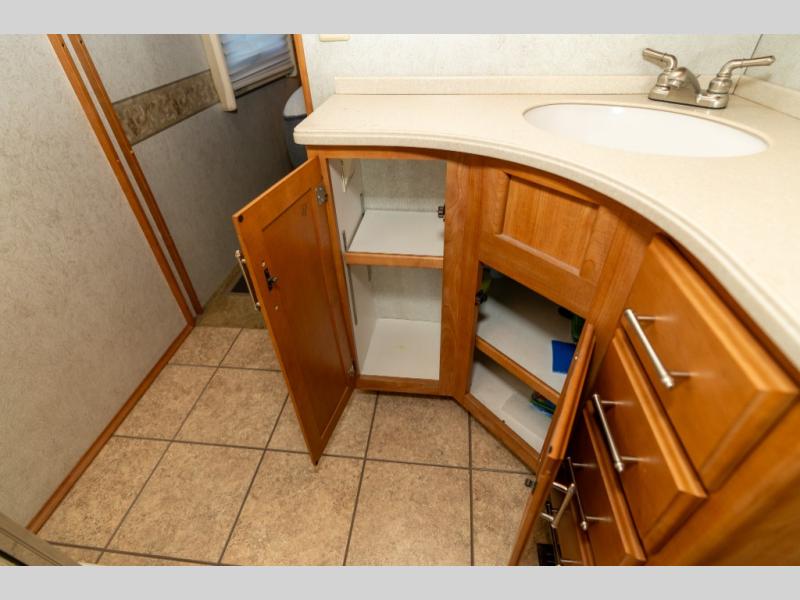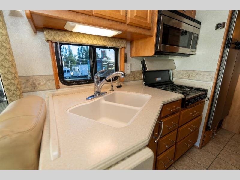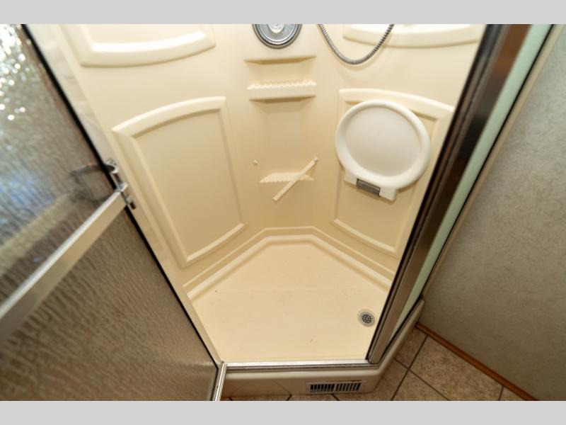 Double Slide, Rear Queen Bed, Nightstands, Wardrobe w/Drawers, Angle Shower, Pantry, Refrigerator, 3 Burner Range, Double Kitchen Sink, Booth Dinette, Sofa Bed, Lg. Lounge Chair & Pull-Out Table, Opt. Dining Table & Chairs & Easy Rest Sofa, Choice of Engine, and More.