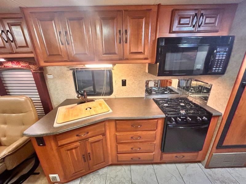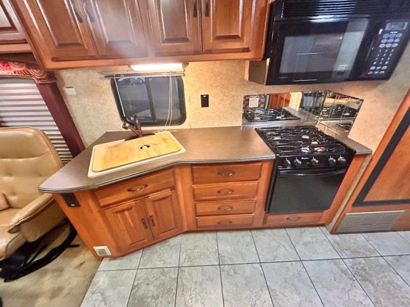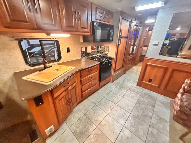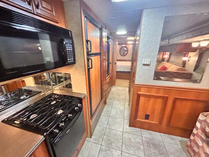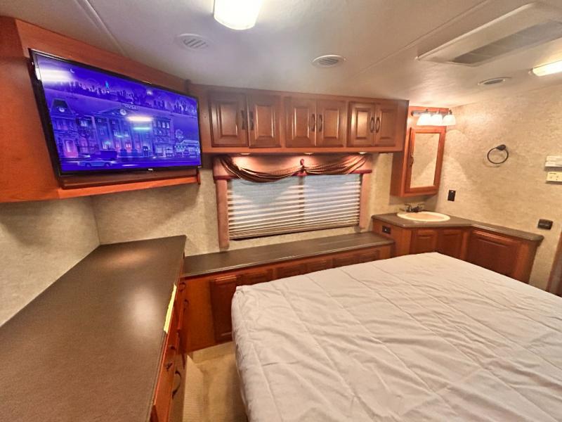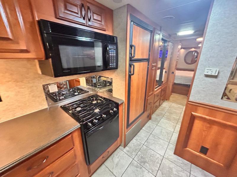 Double Slide, Rear Queen Bed Slideout w/Overhead Cabinet, True Flat Floor in Bedroom, Vanity/Storage, TV, Overhead Cabinets, Drawer Storage, Sink, Large Wardrobe, Angle Shower, Sink w/Overhead Storage, Pantry, Refrigerator, 3 Burner Range w/Microwave Above, Double Kitchen Sink, Booth Dinette & Sleeper Sofa Slideout, LCD TV Above Cab And Much More.
