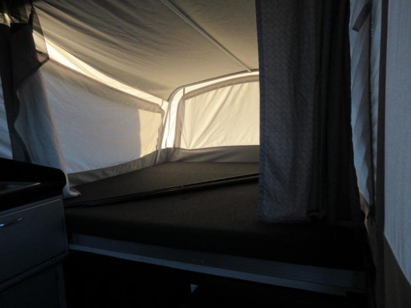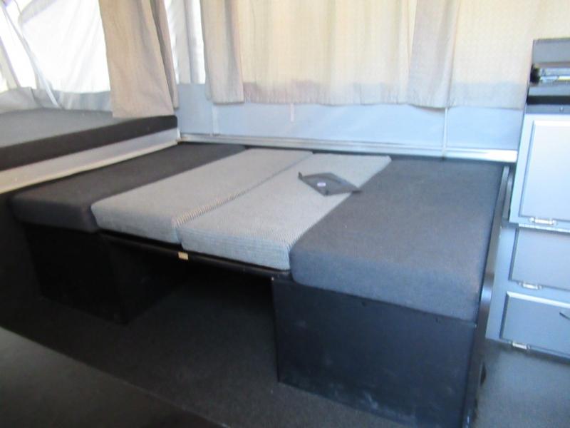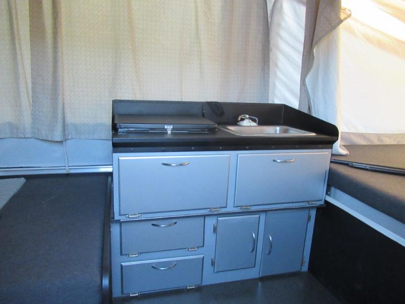 Two Tent End Beds w/One King & One Double, Portable Dinette Table, Plenty of Storage, Galley w/Sink and 2 Burner Stove, and More.