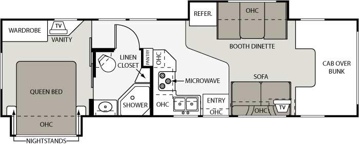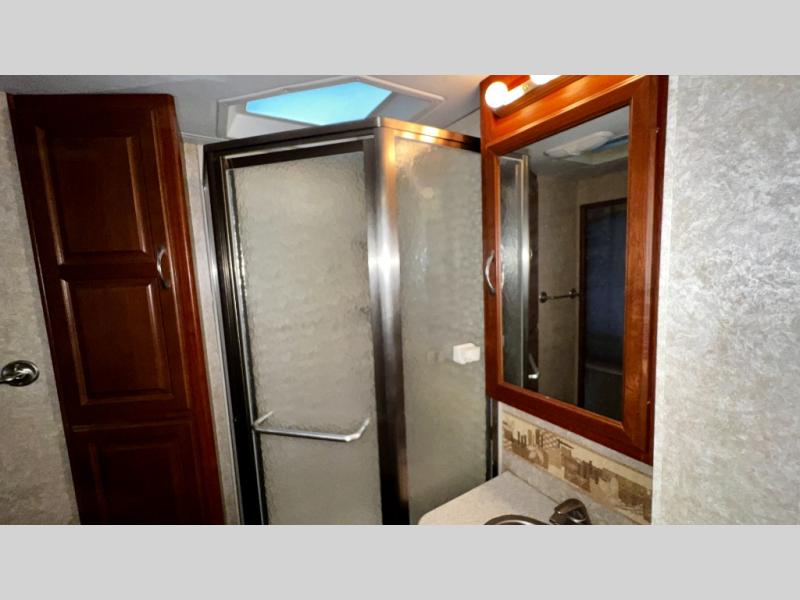 Double Slide, Rear Queen Bed Slide w/Nightstands, Wardrobe, Vanity w/TV, Side Isle Bath w/Angle Shower, Double Entry into Bath, Linen Closet, Pantry, 3 Burner Range, Microwave, Double Kitchen Sink, Refrigerator, Booth Dinette, Sofa, TV, Overhead Cabinets, Bunk Over Cab Area and More. Under 57,000 miles