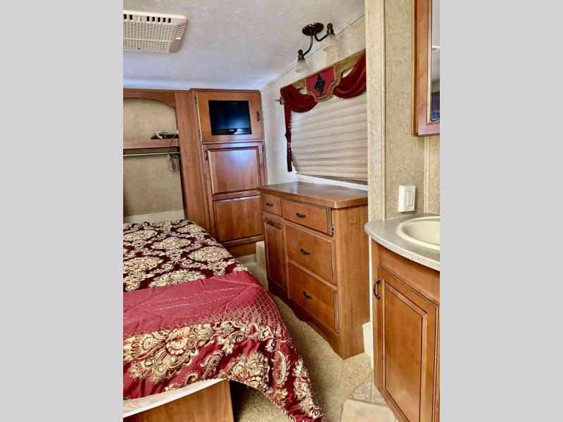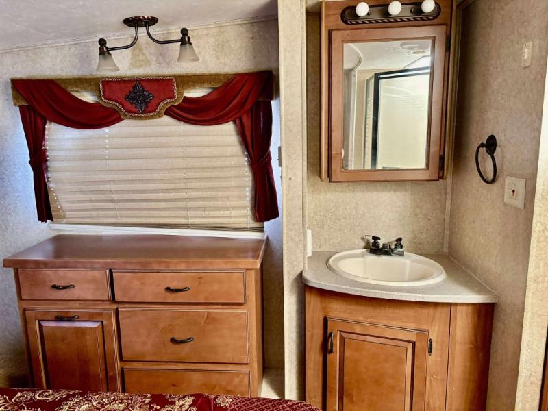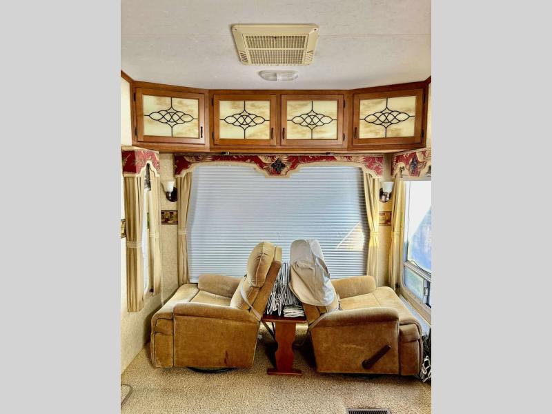 Triple Slide, Rear Living Space w/2 Recliners, End Table, Hide-A-Bed & Free Standing Table & Chairs or Opt. Booth Dinette Slideout, Refrigerator/3 Burner Range & Double Kitchen Sink Slideout, Pantry, Ent. Center, Garden Tub/Opt. Shower, Separate Stool Room, King Bed Slide, Chest/Hamper, Wash/Dryer Opt. & More.