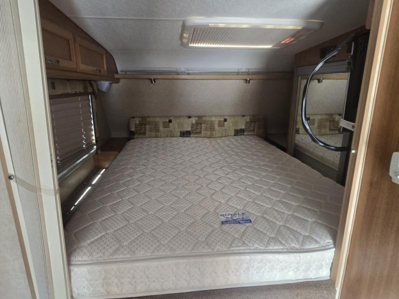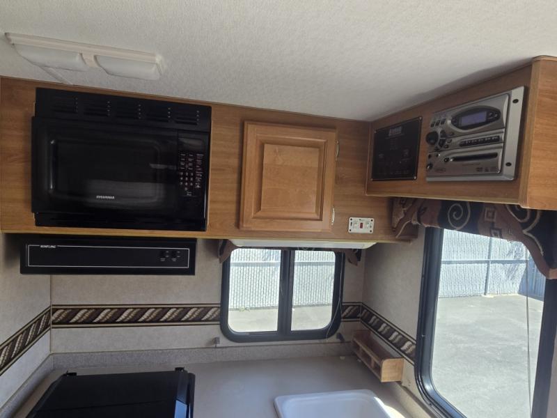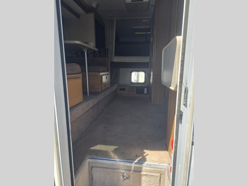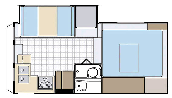 Rear Kitchen w/Double Kitchen Sink, 3 Burner Range, Overhead Cabinets, Refrigerator, Wet Bath w/Shower & Toilet, Booth Dinette Slideout, Mirrored Wardrobe, Queen Cabover Bed, Opt. Fold-Down Bunk, Nightstand and More. Extended Cabover Only.