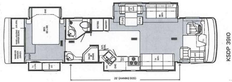 Sale Pending SOLDQuad Slide, Rear Queen Bed, Ward. w/Sliding Mirrored Doors, Wash/Dryer or 2nd Ward., TV w/Storage Below, Dresser, Angle Shower, Lav., Stool Room w/Lav., Refrig., Pantry, Dinette w/Chairs, 2 Sofas, 3 Burner Range, Double Kitchen Sink, TV Above Cab Area and Much More.