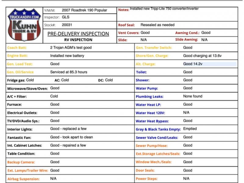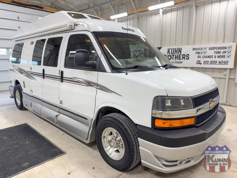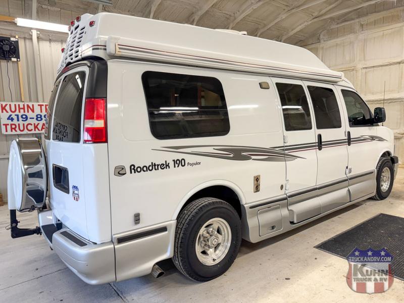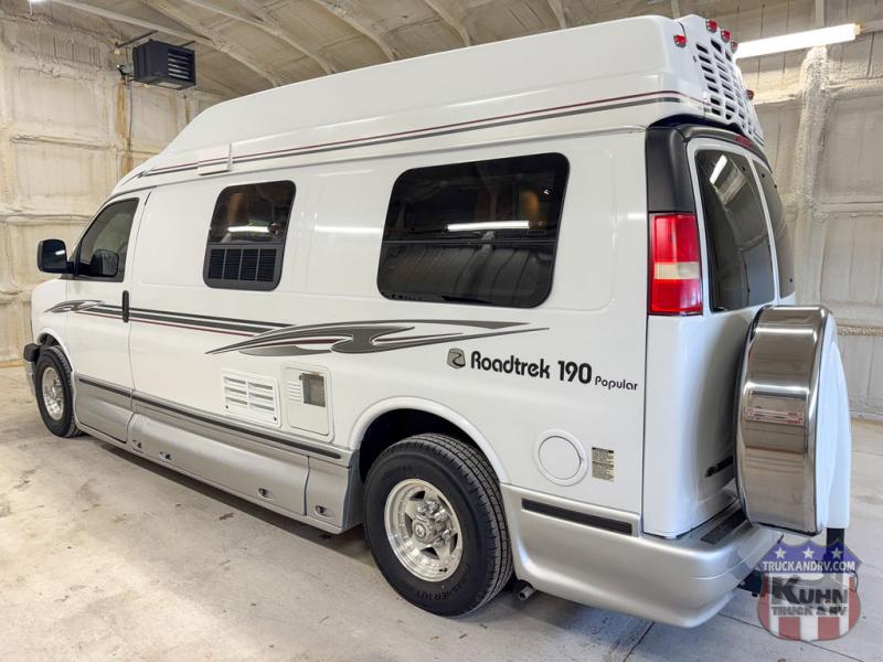 2007 Roadtrek 190 Popular - 20' bumper to bumper - Sleeps 2 - Chevy Express 3500 van chassis - Gas 6.0L V8 engine - Tow package - Onan 2800 gasoline generator with 87 hours - 4 seatbelts - Flat screen TV w/ built in DVD - Microwave oven - 3-way Dometic Fridge/Freezer - Coolcat rooftop A/C and heat pump - Propane furnace - Wet bath - 1 NEW Trojan group 24 AGM coach battery - Power windows, locks, and mirrors - Tilt, cruise, Bluetooth on radio - This Roadtrek is ready for new adventures!