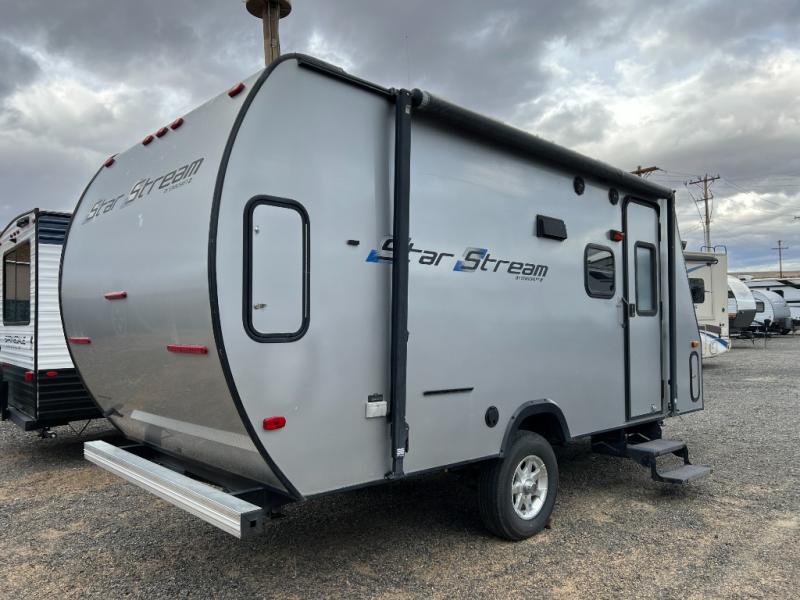 Toward the rear, the dedicated sleeping area and thoughtfully designed bathroom create a private, comfortable retreat that adds convenience without sacrificing space. Lightweight and easy to tow, this model is perfect for campers who want a dependable, manageable trailer that still feels like a true home base. With its practical design, inviting atmosphere, and budget-friendly value, the Star Stream SS18RB offers an excellent opportunity for those who love the outdoors and want a simple, reliable way to enjoy every camping adventure.