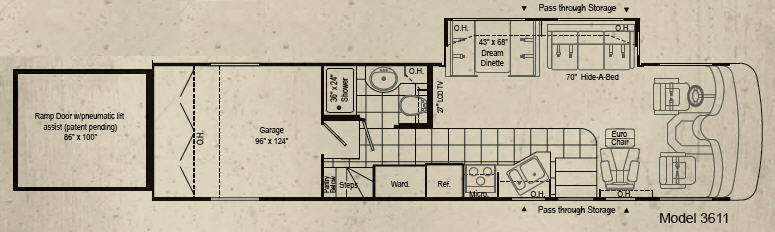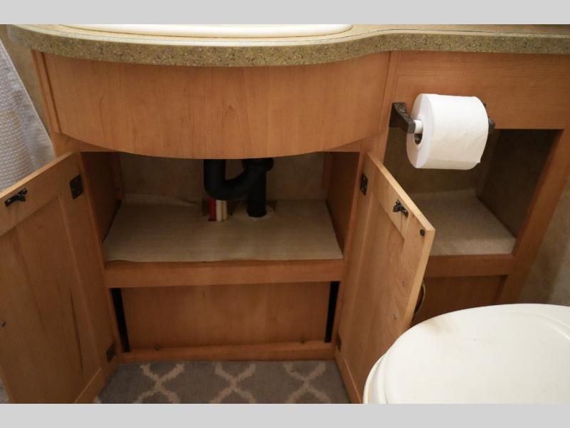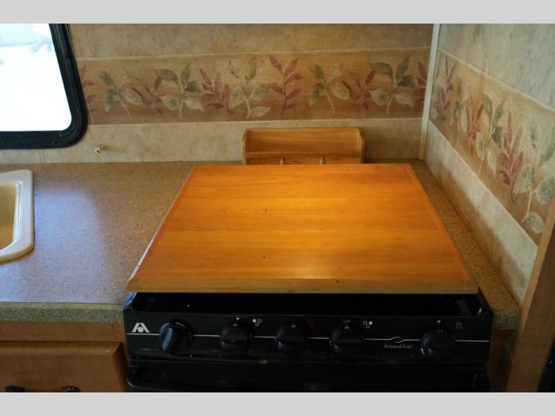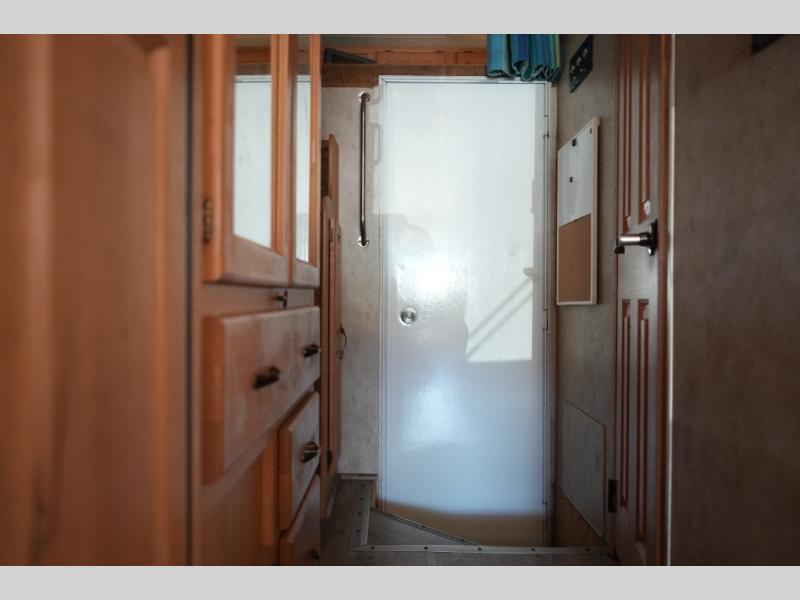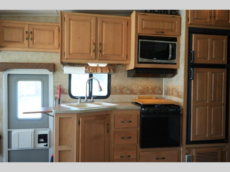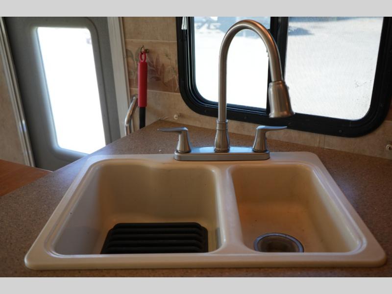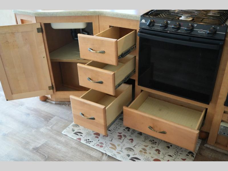 - Fully Equipped Kitchen – Includes a 3-burner range, double sink, refrigerator, microwave, and pantry – everything you need to cook your favorite meals on the road.