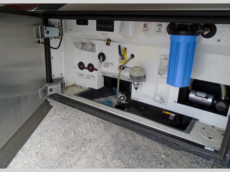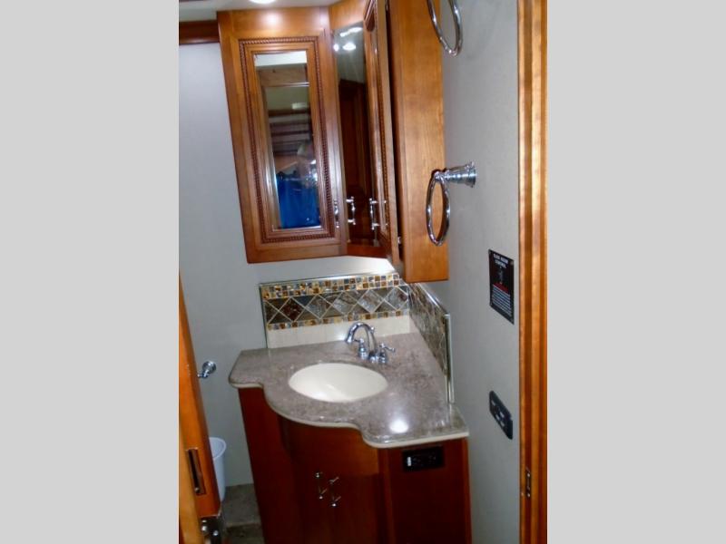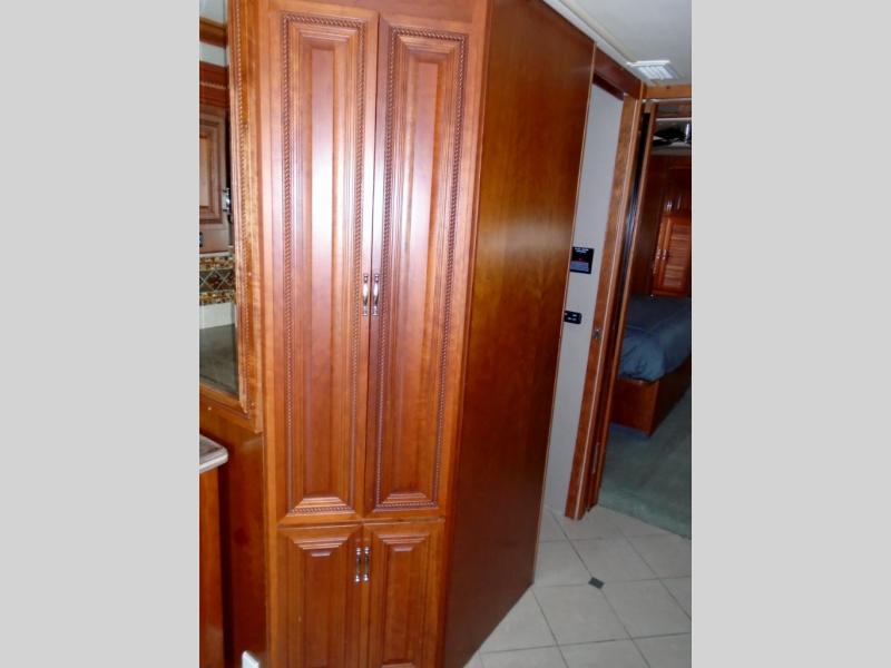 Triple Slide American Eagle Motor Home w/Rear Bath & Full Driver Side Slideout, Shower w/Seat, Washer/Dryer, Lav., Med. Cabinet, Ward., Queen or Opt. King Slide w/Nightstands, 26" Flat Screen TV/Linen Cabinet/4-Door Refrig./Dining Table & Chairs w/Base Cabinet & Sofa w/Air Mattress Slideout, 32" Flat Screen Above Cab Area, Leather Sofa Bed/Double Kitchen Sink & 2 Burner Range w/Micro. Slideout, Throw Rugs Available w/Full Tile Opt., 1/2 Bath, Pantry,