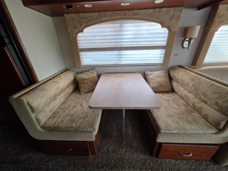 Class A Coach w/Double Slideouts & Rear Bath, Large Vanity w/Sink, Wardrobe & Queen Bed w/Nightstands Slideout, Vanity/TV Above, Wardrobe, Pantry/Refrigerator/Booth Dinette & Sofa Bed Slideout, Lounge Recliner w/Side Table, Flip Up Entry Shelf, Double Kitchen Sink, 3 Burner Range, Microwave Above, Utility Cabinet or Opt. Washer/Dryer, Engine & Chassis Choice and More.