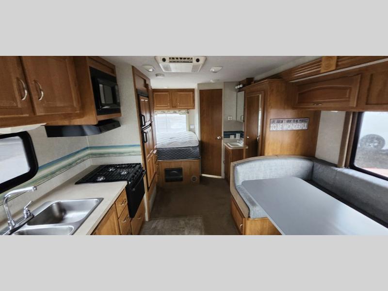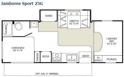Single Slide, Rear Corner Bath w/Shower, Toilet, Rear Corner Queen Bed, Pantry, Refrigerator, 3 Burner Range, Double Kitchen Sink, Lav., Wardrobe & Booth Dinette Slideout, Cabover Bed, TV Space & Storage Above Cab Also, Opt. Awning, Exterior Storage and Much More. Ford Specifications Shown. See us for Workhorse Specs.