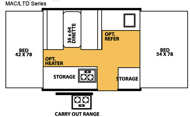 Flagstaff LTD Series Folding Camper w/Front & Rear Tent End Beds, Booth Dinette, Opt. Refrigerator, Storage Cabinet, Opt. Heater, Storage Below 2 Burner Cooktop, Carry Out Range & More.