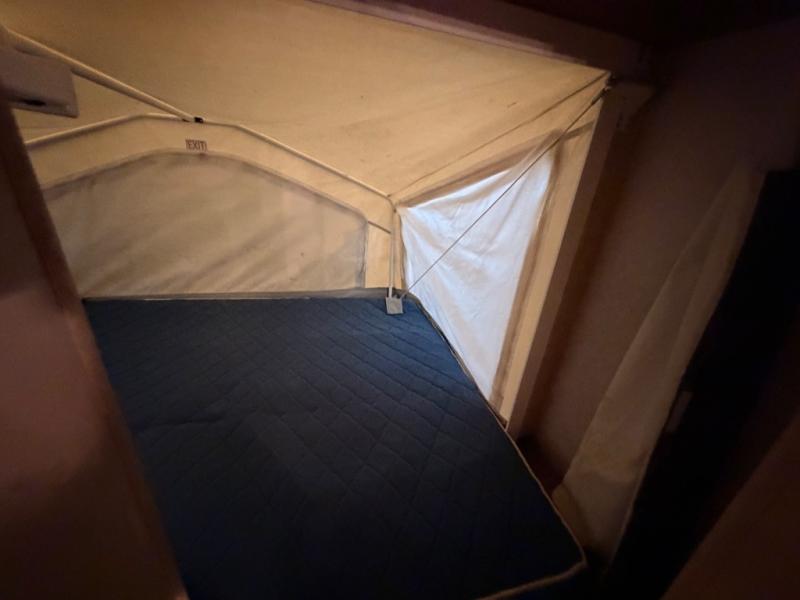 Front & Rear Pivot Tent End Beds, Overhead Cabinets, Rear Storage, Pantry, Angle Shower, Med. Cabinet, Refrigerator, Double Kitchen Sink, TV Ent. Center, Booth Dinette & Sofa Slideout, 3 Burner Range, Exterior Storage and Much More.