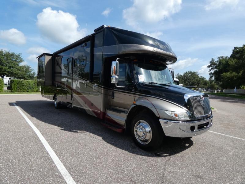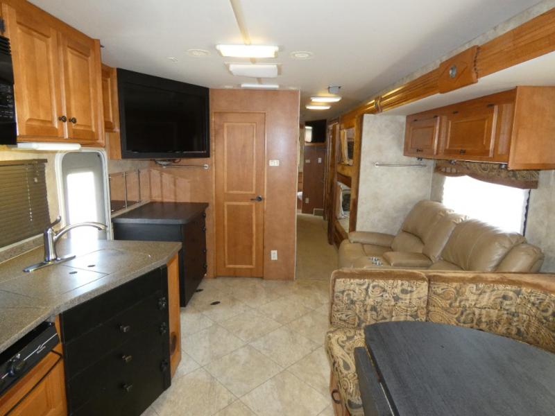 Double Slide SuperNova Class C Motor Home, Rear Master Bath w/Shower, Lav. & Linen Closet, King Bed Slideout, Full Length Slideout w/Wardrobe w/Drawers, Bunk Beds, Theater Seats & U-Dinette, Bath w/Lav. & Linen Closet/Washer/Dryer Prep, 32" LCD TV, Double Kitchen Sink, 3 Burner Range, Pantry, Refrigerator, Over-Cab Bunk, Over-Cab LCD TV, Overhead Cabinets Throughout and Much More!