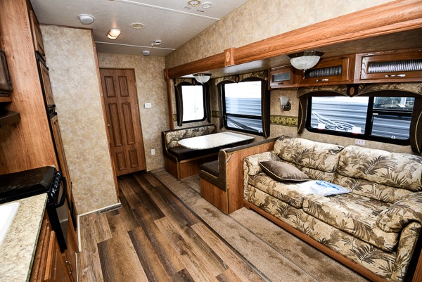 Single Slide Bunkhouse Fifth Wheel, Rear Double Set Bunk Beds w/Storage Box & TV Cabinet, Pantry, Refrigerator, 3 Burner Range w/Microwave, Double Kitchen Sink, Booth Dinette & J-Steel Sofa Slideout or Opt. Extendable Dinette or Free Standing Dinette w/Chairs for Dining, Entertainment Center, Wardrobe, Step Up To Bath, Wardrobe, Lav., Med. Cabinet, Tub/Shower, Step Up To Bedroom w/TV Shelf, Queen Bed w/Wardrobes & Overhead Storage Cabinet, 20' Opt. Awning, Pass-Thru Storage and More.
