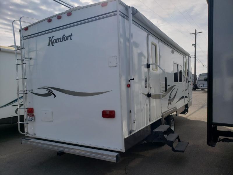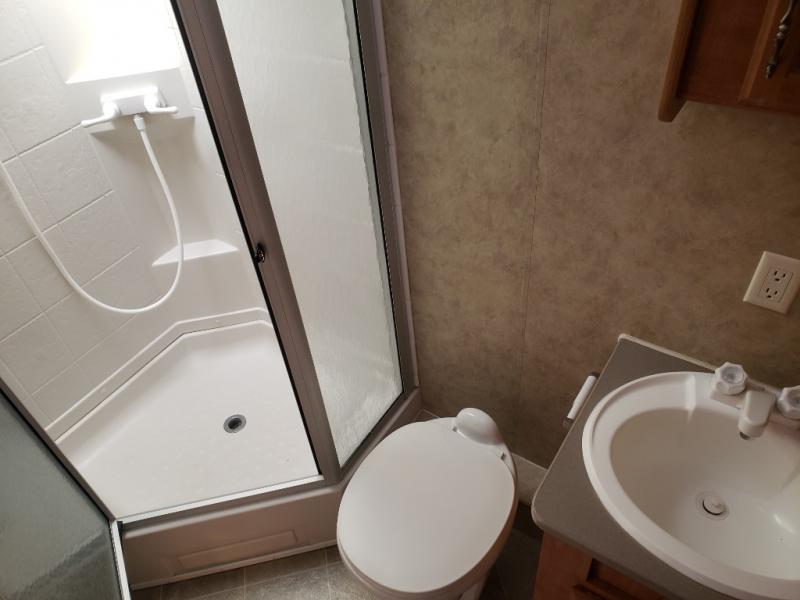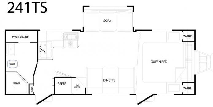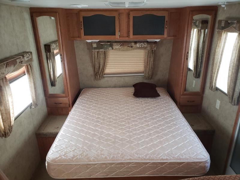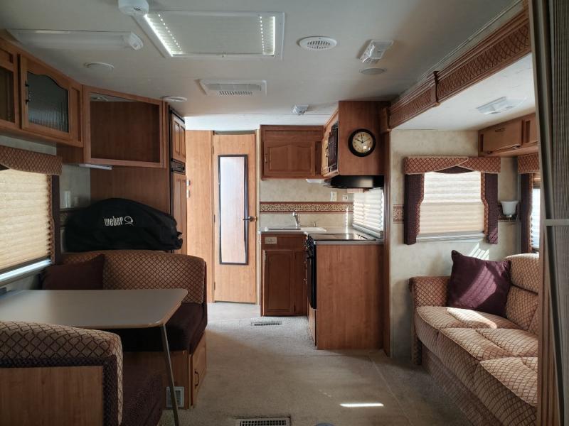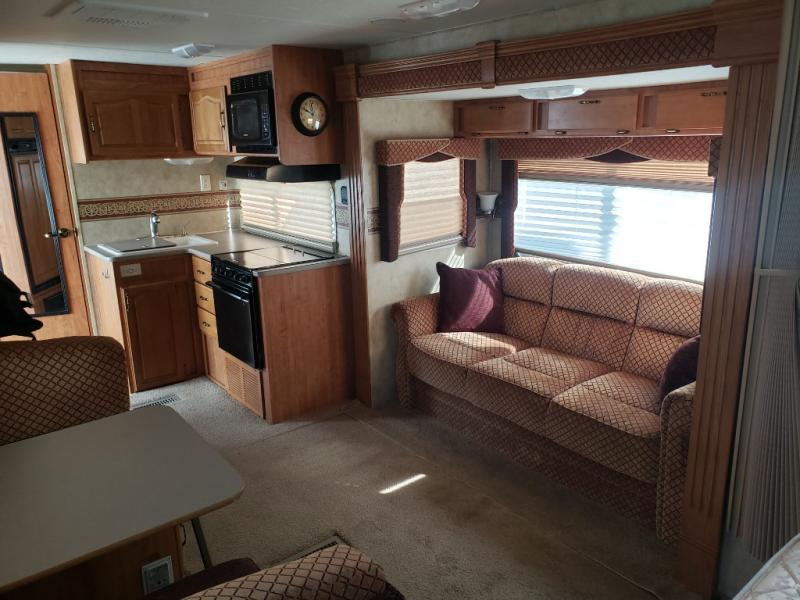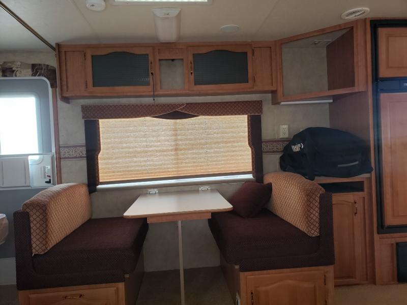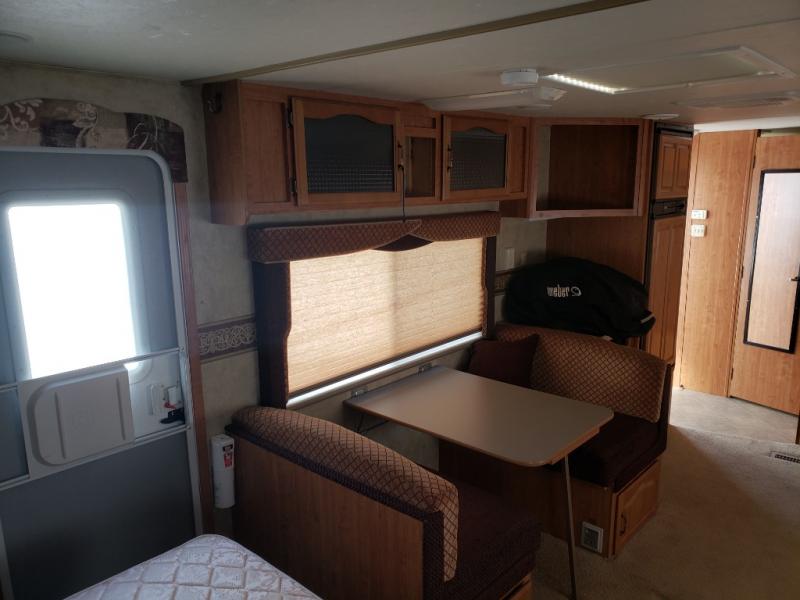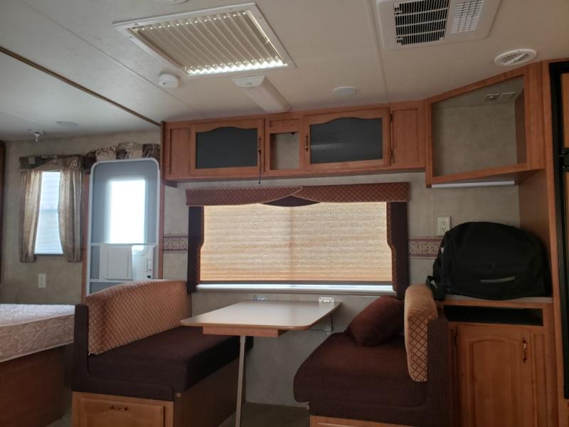 Single Slide Travel Trailer w/Rear Bath w/Large Wardrobe, Angle Shower, Lav., Pantry, Double Kitchen Sink, 3 Burner Range, Refrigerator, Booth Dinette, Sofa Slideout, Ent. Center, Front Queen Bed w/Dbl. Wardrobes, Separate Bedroom Entrance and Much More.