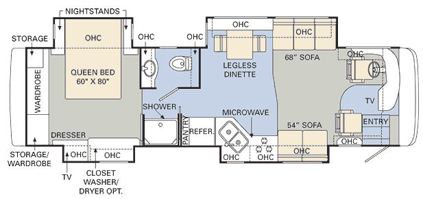 When it's time for your next getaway come check out this Quad Slide class "A" motorhome. Where you can rest up for a new day of adventure with the Rear Queen Bed Slide out w/Nightstands, Wardrobe w/Storage Cabinets Both Sides. You will also appreciate the Dresser w/TV Above & Closet. Provides privacy with a Stool Room w/Lav., Large Shower. The amenities include Pantry, Refrigerator, Double Kitchen Sink/3 Burner Range & 54" Sofa Slide out. Enjoy the TV Above Cab Area, Legless Dinette w/Chairs & desk area. Plenty of storage throughout the Overhead Cabinets & Much More.