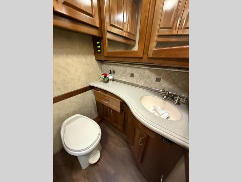 Inside, you’ll find high-end cabinetry, plush furnishings, and a thoughtfully designed layout perfect for extended travel or full-time RV living. The large living area, residential-style kitchen, and private master suite create a comfortable and refined environment whether you’re entertaining guests or enjoying a quiet evening at the campground.