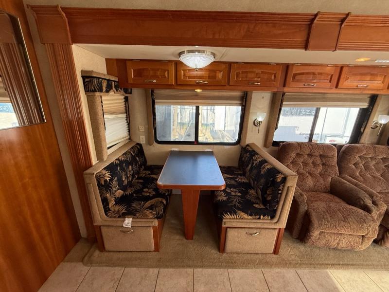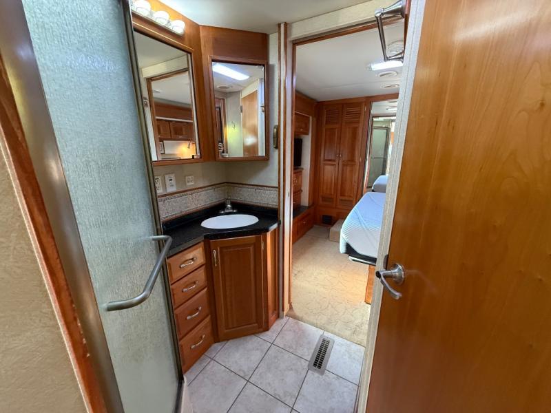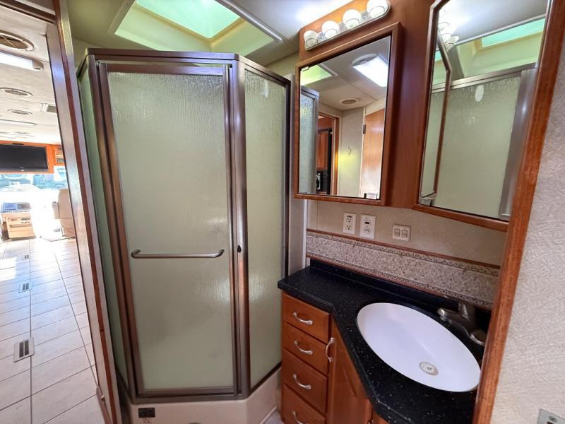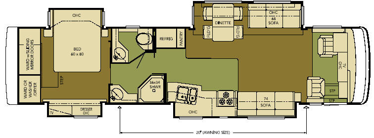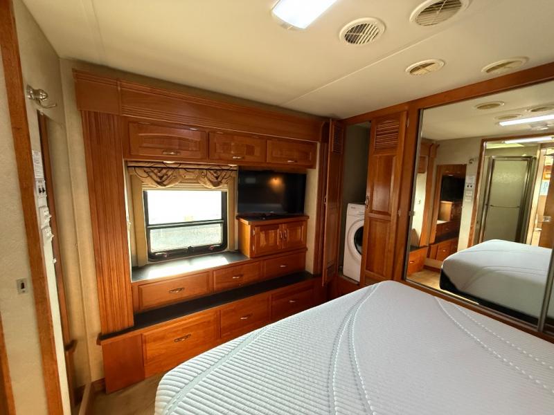 Quad Slide, Rear Queen Bed Slideout, Ward. w/Sliding Mirrored Doors, Wash/Dryer or 2nd Ward., TV w/Storage Below/Dresser Slideout, Angle Shower, Lav., Stool Room w/Lav., Refrig., Pantry, Dinette w/Chairs & Sofa Slideout, 2nd Sofa/3 Burner Range/Double Kitchen Sink Slideout, TV Above Cab Area and Much More.