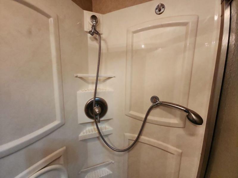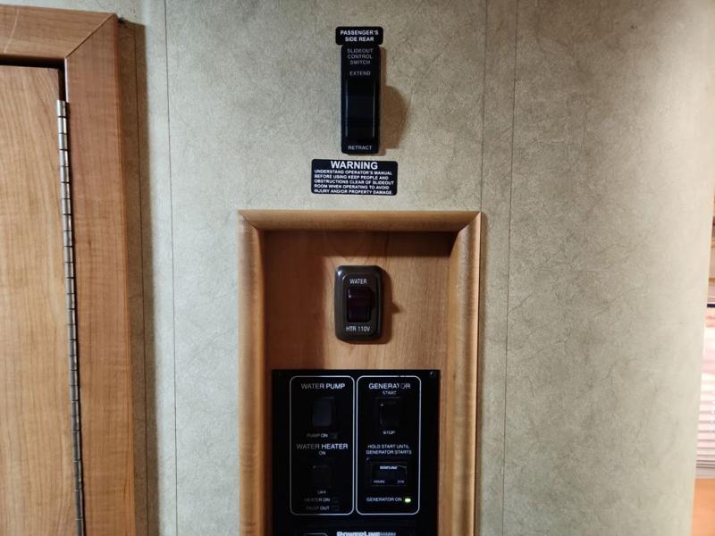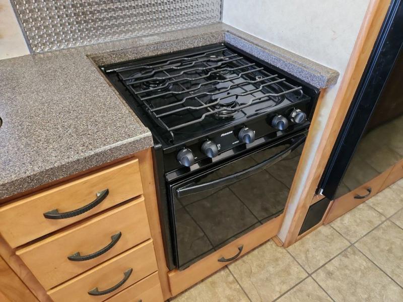 Double Slide, Rear Queen Bed Slideout w/Nightstand, Wardrobes, Chest of Drawers, Location for Washer/Dryer w/TV Cabinet Above, Nightstand w/Drawers above, Lav., Angle Shower, Pantry, Refrigerator, 3 Burner Range, Double Kitchen Sink, Lounge Chair, Rest Easy Sofa/Booth Dinette Slideout, Overhead Cabinets, and Much More!