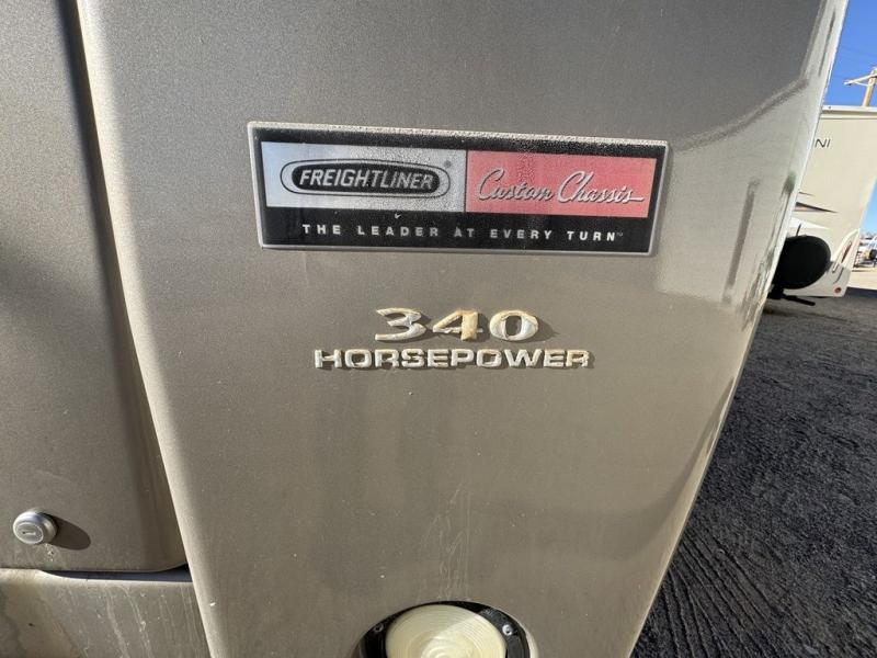 Double Slide, Bedroom & Galley Slideout w/Queen or Opt. King Bed/Nightstands/Wardrobe/Pantry/Refrigerator w/4 Door Opt./3 Burner Range & Double Kitchen Sink Super Slide, Euro Chair w/Ottoman, Corner End Table Cabinet, Booth Dinette or Opt. Round Dinette & Chairs w/Sofa Bed Slideout, 30" TV, Angle Shower, Lav., Med. Cabinet, Double Bath Entrance, Bench Seat Storage in Bedroom & Opt. Washer/Dryer, Opt. Freightliner Chassis and Much More.