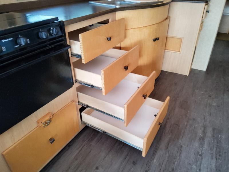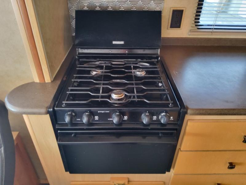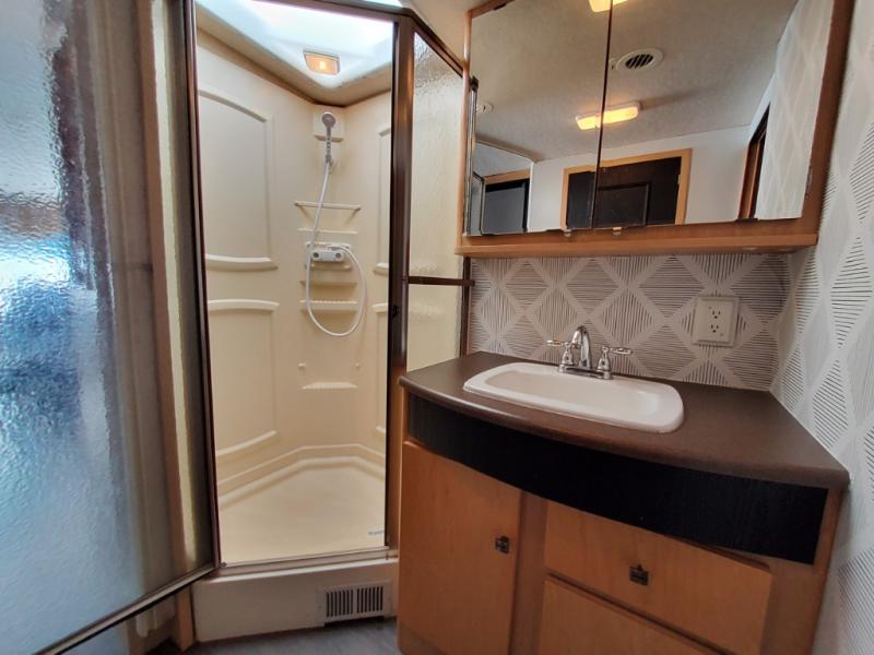 Triple Slide Class A w/Rear Queen Bed Slide, Nightstands, Wardrobe, Opt. TV, Stool Room, Vanity, Angle Shower, Sliding Door to Bedroom, Refrigerator, Pantry, Booth Dinette & Sofa Bed Slideout w/Exterior StoreMore. TV Above Cab Area, Lounge Chair, 3 Burner Range & Double Sink Slideout, Choice of Engine & Chassis and Much More. Ford Specifications Shown.