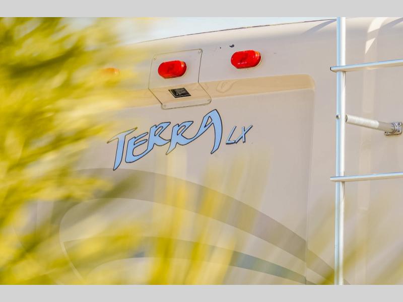 Double Slide Terra XL Class A Motor Home, Rear Queen Bed Slideout w/Nightstands, Wardrobe, Vanity w/TV Overhead, Storage Cabinet, Side Aisle Bath w/Angle Shower, Lav., Linen Cabinet, Double Bath Entrance, Microwave, 3 Burner Range, Double Kitchen Sink, Sofa Bed, TV Above Cab Area, Pantry/Refrigerator/Booth Dinette Slideout, Engine & Chassis Choice and Much More.