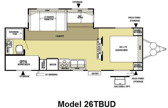 Single Slide Salem LE Travel Trailer by Forest River, Rear Bath w/Toilet, Tub/Shower, Lav. w/Med. Cab., Triple Rear Bunk Beds, Ward. w/Drawers, Refrig., 3 Burner Range w/Micro., Dbl. Kitchen Sink, Slide Out U-Shape Dinette & Sofa w/Overhead Cab., Ext. Storage, Swivel TV Mount w/Flatscreen TV, Front Queen Bed w/Ward. & Drawers, Pass Thru Storage, Gas Grill Opt., 16' Awning and More.